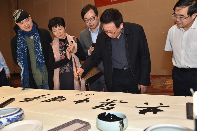 揭牌仪式后还举行了“喜迎十九大、共筑中国梦”主题笔会,民盟中央美术院领导与宁波的盟员艺术家,泼墨挥毫,以书会友,共贺民盟中央美术院宁波分院的正式成立。