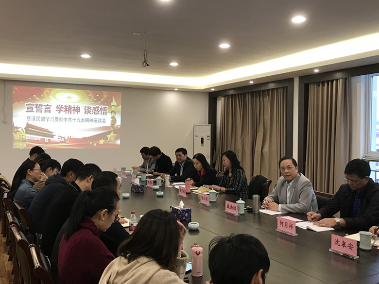 十九大开幕会后,民盟慈溪市基层委员会就迅速发动领导班子和盟员通过撰写心得体会拉开了学习十九大精神的序幕。为了进一步学习好、宣传好、贯彻好十九大精神,入盟宣誓仪式后,基层委员会召开学习贯彻中共十九大精神座谈会,改变以往单项宣读的学习方式,以座谈交流的形式,由13位老盟员和32位新盟员一起讲盟史、聊感受、谈体会,把学习贯彻十九大精神向纵深推进。